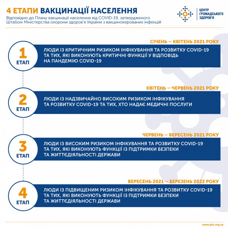 Планом затверджено 4 етапи вакцинації населення: