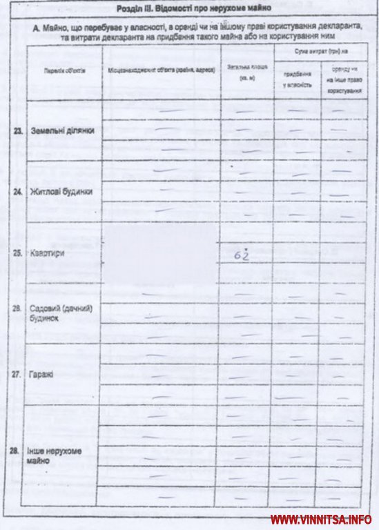 В декларації зазначено що у володінні (чи користуванні) Ігоря Солоненка є квартира, площею 62 кв.м. та автомобіль «Фольксваген Пассат» 2001 року випуску.