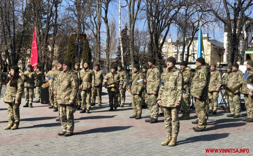 У середмісті Вінниці 14 березня зіграв військовий оркестр Центру військово-музичного мистецтва Повітряних сил Збройних сил України. Це була спонтанна акція, яка вчергове продемонструвала, що в Україні армія і народ – єдині!