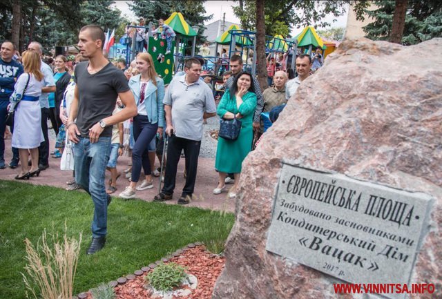 Європейська площа – черговий дарунок місту від родини Вацак, тож приурочив її меценат саме на день народження Могилева-Подільського, який могилівчани відзначали в унісон з державним святом Незалежності.