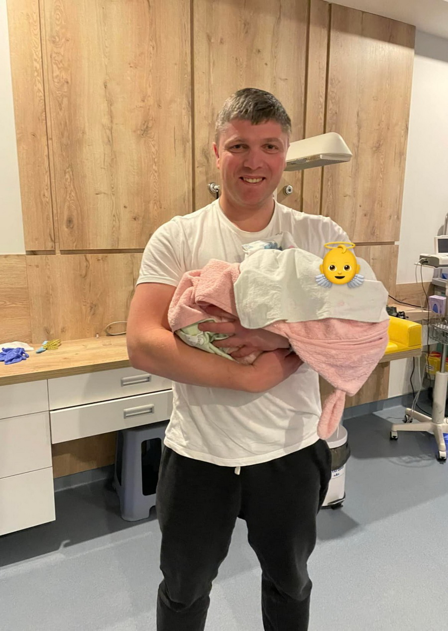 «В цей важкий для нашої країни час, хочеться побільше ділитись приємними світлинами! В моєму житті вчора відбулась велика радість, в мене народилась донечка. Це янголятко миру і своєю появою на світ, вона змінила цей несправедливий «рахунок» і тепер є плюс, плюс одна справжня україночка.