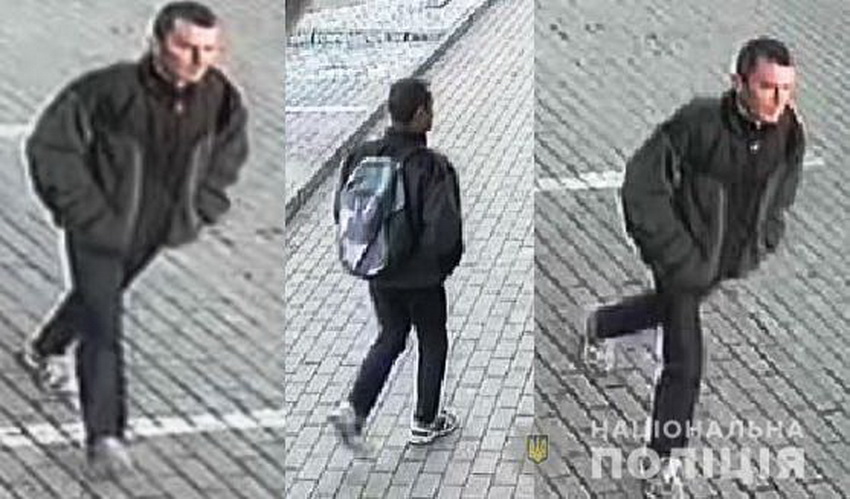Чоловік віком 30-40 років, зріст 170-175 см, худорлявої тілобудови, обличчя худе, з вираженими вилицями, коротке чорне волосся. Під час вчинення злочину був одягнений в куртку двох кольорів (темного та зеленого), темні джинси, світло-сірі кросівки з темними вставками.