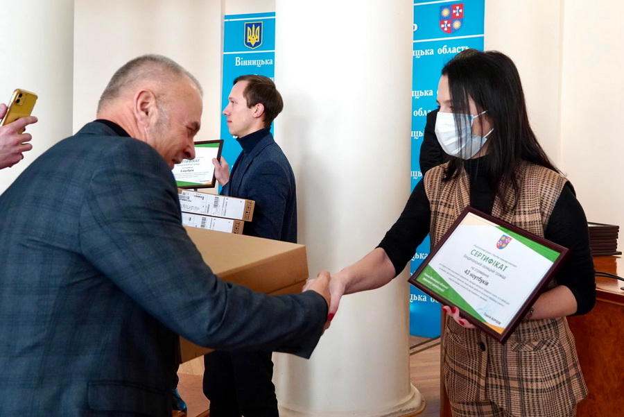 Цьогоріч для шкіл територіальних громад Вінницької області з державного бюджету України виділено субвенцію у сумі 39, 2 млн грн для закупівлі ноутбуків. Територіальні громади з місцевих бюджетів виділили ще майже 7,5 млн грн.