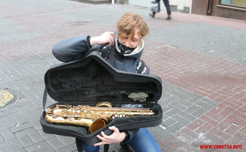 Одними з перших нам трапилися двоє студентів. Як виявилося, хлопці навчаються у Вінницькому коледжі культури і мистецтв імені Леонтовича. Обидва – саксофоністи. Про посилення карантину чули, але кажуть – ще особливо не думали на цю тему. Вірогідно, гратимуть на інструментах та вивчать нові мелодії.