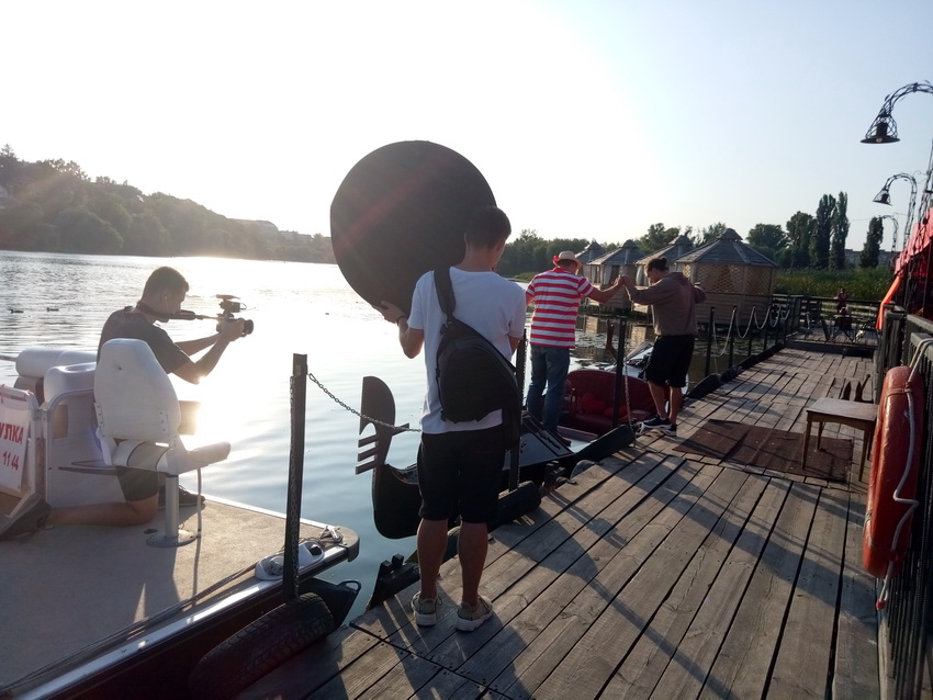 Із знімальною групою ми зустрілися на території пабу на воді, що неподалік Центрального автовокзалу. Героєм сюжету став Віталій Гуменюк, який Вінницю перетворив на своєрідну Венецію гондолою «Джульєтта».