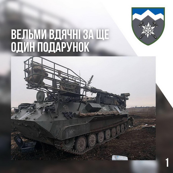12 березня 10 Гірсько-Штурмова Бригада поповнила кількість військових трофеїв комплексом РЕБ противника. Тепер той буде працювати на захист проти кремлівських посіпак. Його, на згадку ворогові, сфотографували з різних ракурсів та підписали: «Вельми вдячні за ще один подарунок».