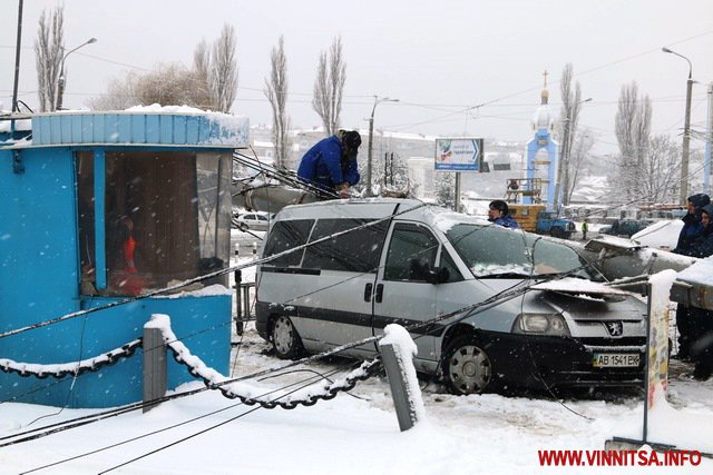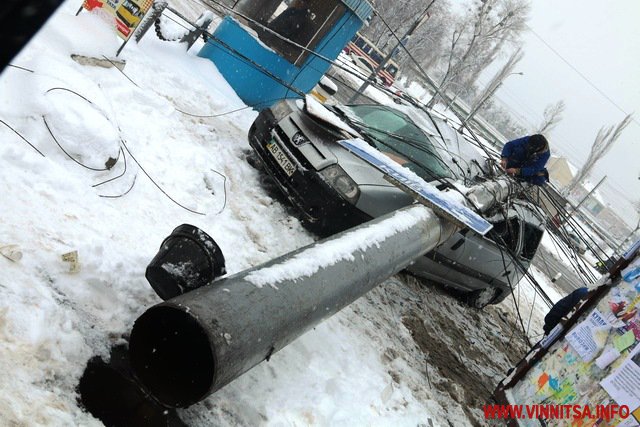 Відомо, що під час падіння електроопори на «Пежо», постраждав водій, що стояв поруч. Чоловіка забрала швидка допомога. Із травмами голови вінничанин перебуває в лікарні.