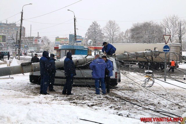 Як розповів Вiнниця.info директор «Вінницької транспортної компанії» Михайло Луценко, внаслідок інциденту обірвалися всі розтяжки, які відповідали за курсування тролейбусів. Ліквідувати аварію планують впродовж кількох годин.