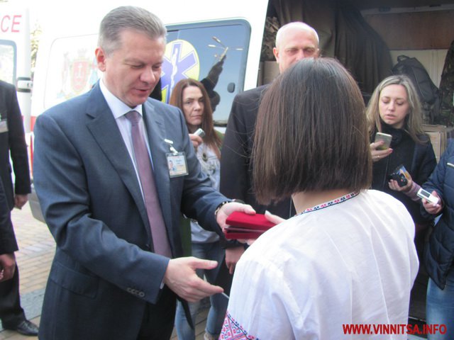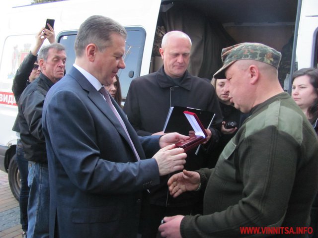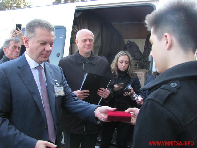 Перед поїздкою вінницьким волонтерам вручили нагороди, які для них підготувала 72-га окрема механізована бригада. Ордени отримали: Андрій Нечипорук, Олександр Кривак та Леонід Гармідер. Відзнаки останніх двох вручили їх дітям.