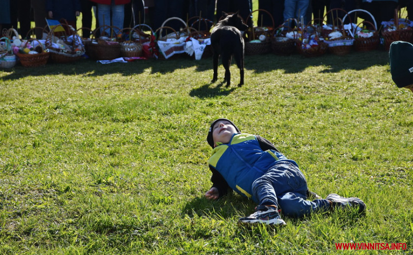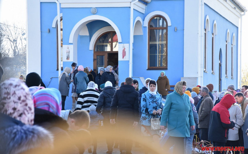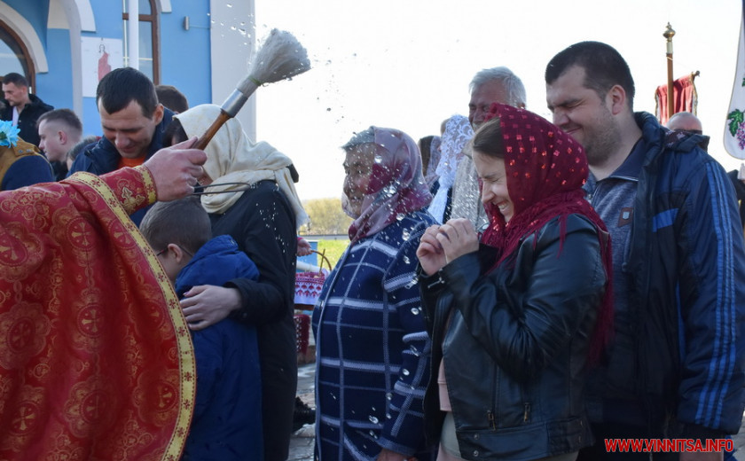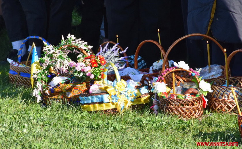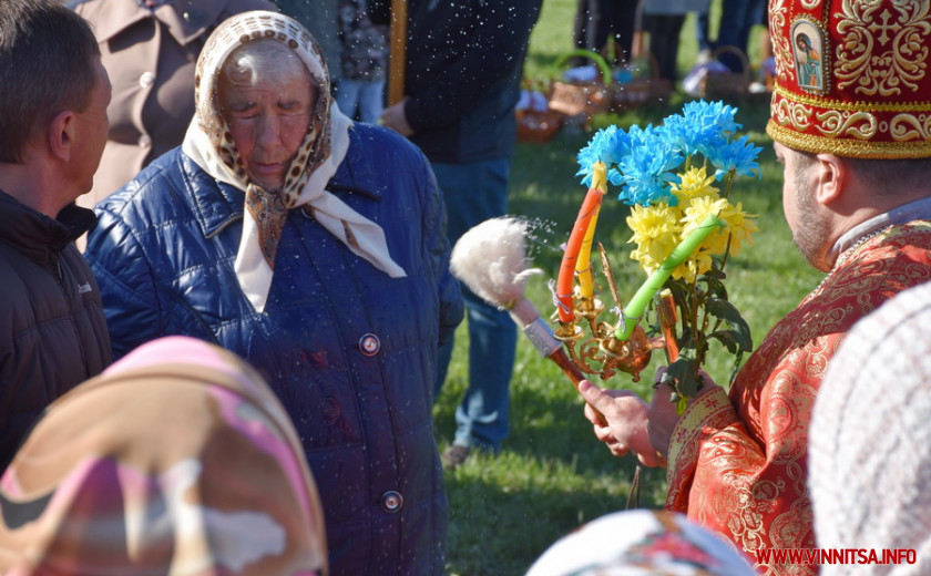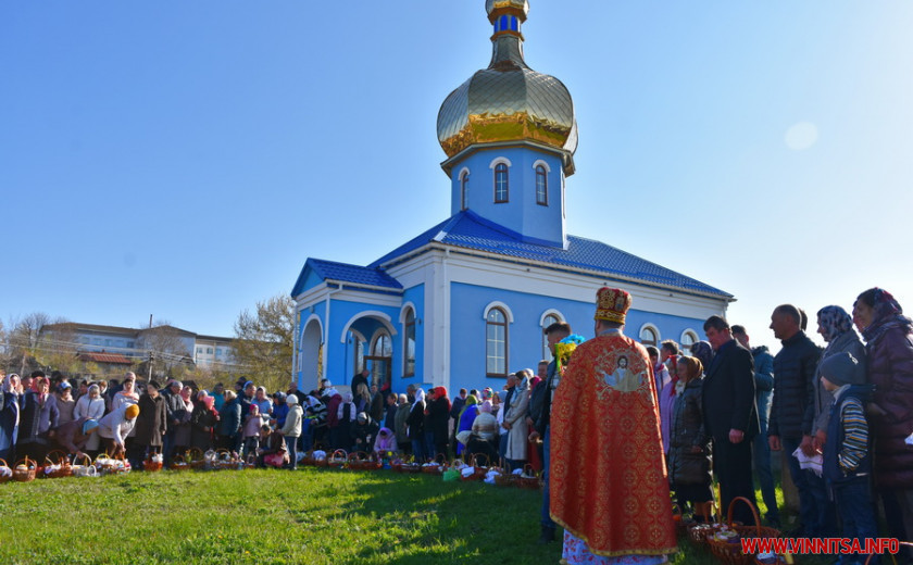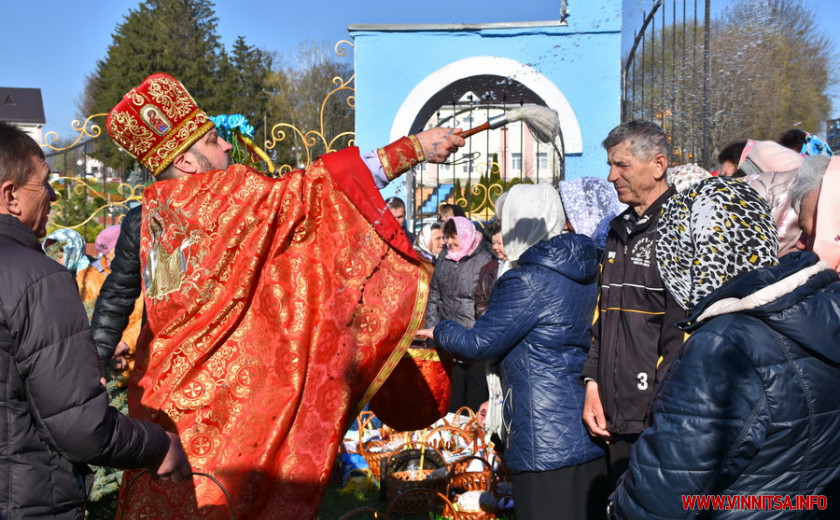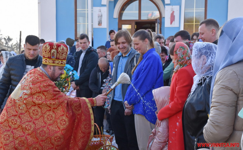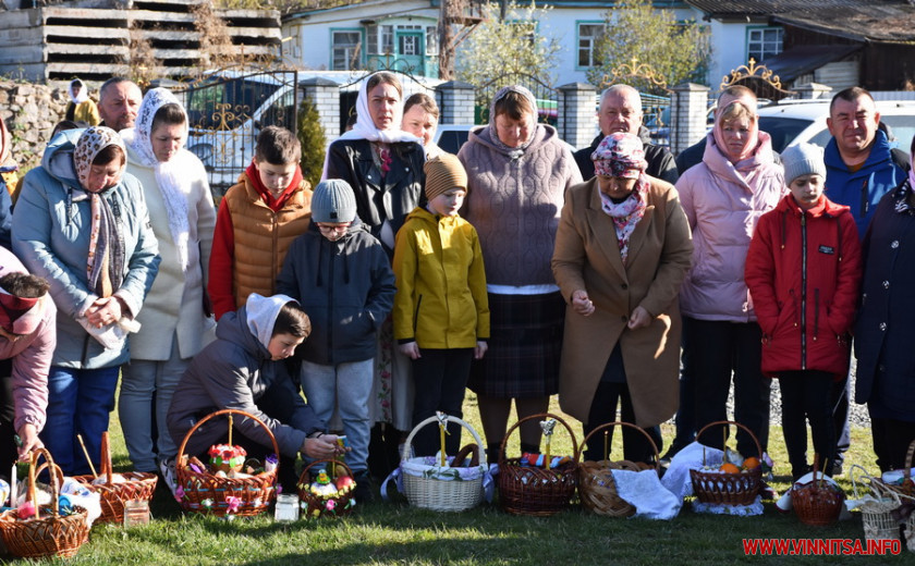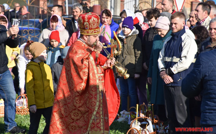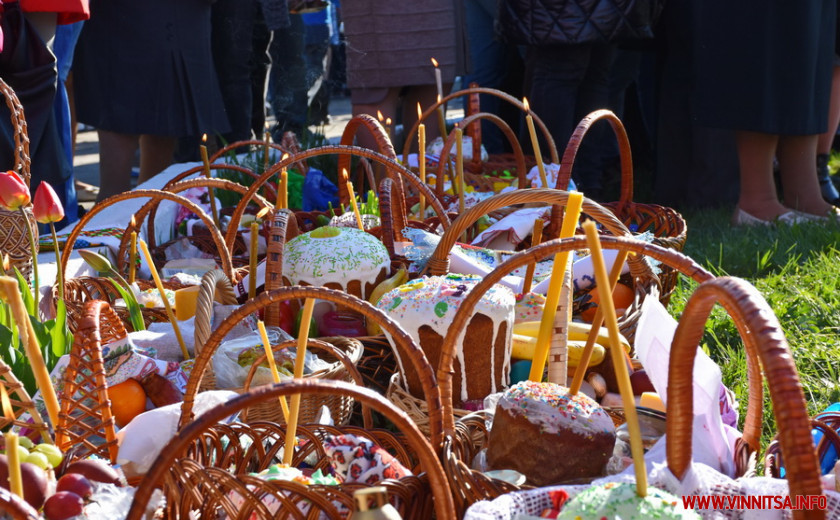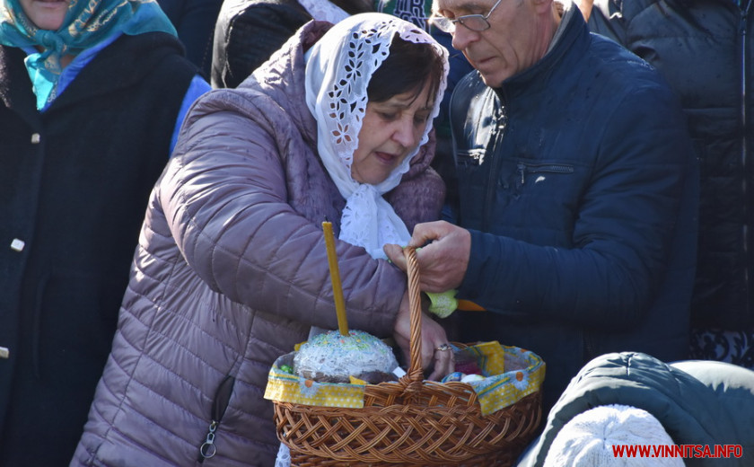 На подвір’ї одного з храмів на Вінниччині, зібралися сотні людей. Хто прийшов з сім’єю, хто – один. У кошику кожного – паска, ковбаска, крашанки та овочі. Люди принесли із собою сирні бабки, сало та хрін. Все за українськими традиціями.