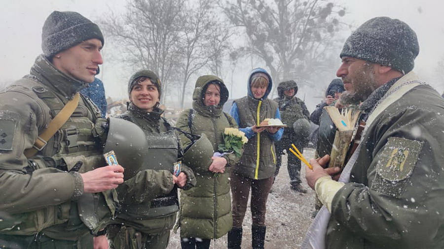 «Без тамади та фати, зате у колі бойових побратимів, і навіть бійців з підрозділу територіальної оборони закохані створили нову сім'ю. Військовий капелан протоієрей Василь Андрійчук, благословляючи молодят на щасливе та сповнене Божою милістю життя, побажав їм бути гідними своїх обіцянок, вірними собі та своїй державі, не відступати перед випробуваннями та щоб тепло сімейного вогнища зігрівало всі прийдешні покоління нащадків», – йдеться у повідомленні.