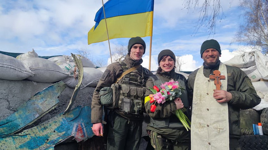 8 березня на Вінниччині нагвардійці Олена та Олександр обвінчалися на бойових позиціях. Факт вінчання засвідчив командир частини та військовий капелан.