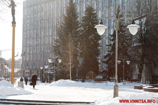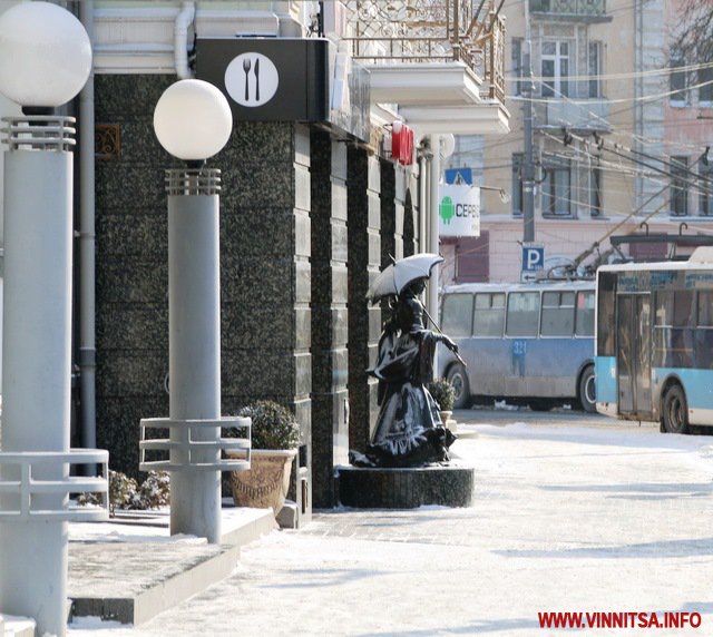 Весна у Вінницю прийшла з ранковим снігопадом і сонцем. 1 березня на термометрах мінус 12 градусів, вітер. На дорогах ожеледиця, слизькі тротуари.