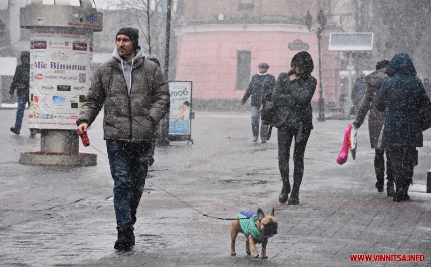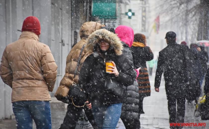 5 березня, близько 12:30 години, у Вінниці розпочався снігопад. Сніг вмить накриває тротуари, припарковані автомобілі та дахи будинків.