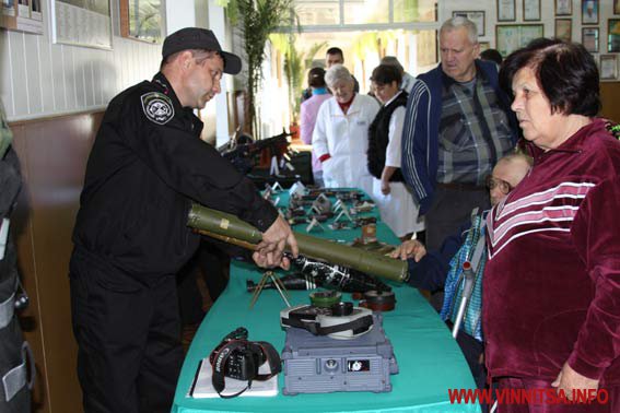 Міліція взяла участь в організації тематичного семінару з військової справи для пенсіонерів, ветеранів, які проходять лікування у Вінницькому обласному клінічному госпіталі для інвалідів війни та медперсоналу закладу. Колишні військові змогли пригадати армійські часи, а медики ознайомились з технічними характеристиками зброї.