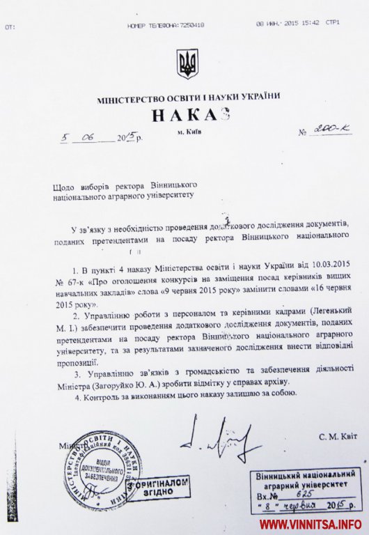 Про це зазначено в Наказі Міністерства освіти і науки України № 200-К від 5 червня 2015 року.