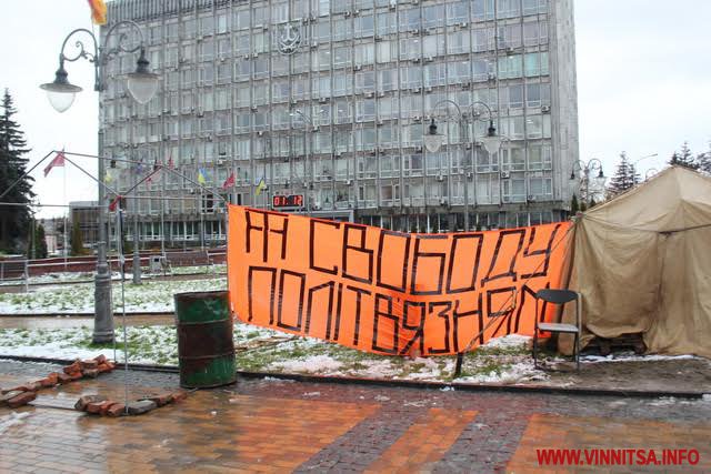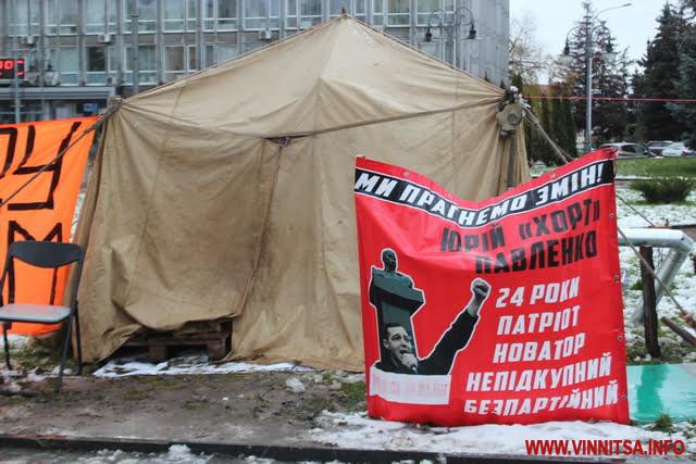 У Вінниці вже обрали депутатів міськради, облради, міського голову, а намет, бочка та передвиборчий лозунг «тарифного майдану» й досі «прикрашає» Майдан незалежності в центрі міста.