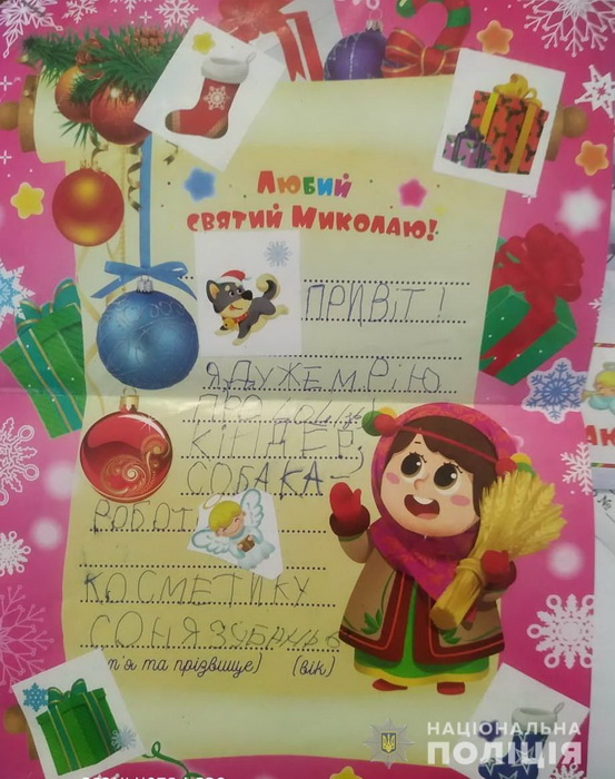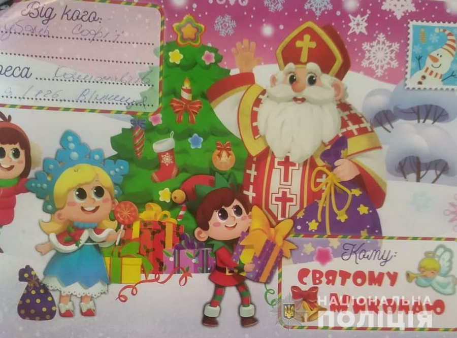 Як повідомили у відділі комунікації Нацполіції у Вінницькій області, 6-річна Софійка та 9-річний Юра написали про свої бажання та довірили доставку листів поліцейським.