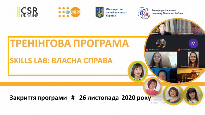 На Вінниччині завершилась друга в цьому році тренінгова програма «Skills lab: власна справа». Молодь навчали, як започаткувати власну справу, а на завершення програми учасники презентували 20 проектів бізнес-ідей в різних сферах: від торгівлі і до освіти. Серед презентованих ідей: комп’ютерна майстерня, весільна агенція та лінгвістична школа.