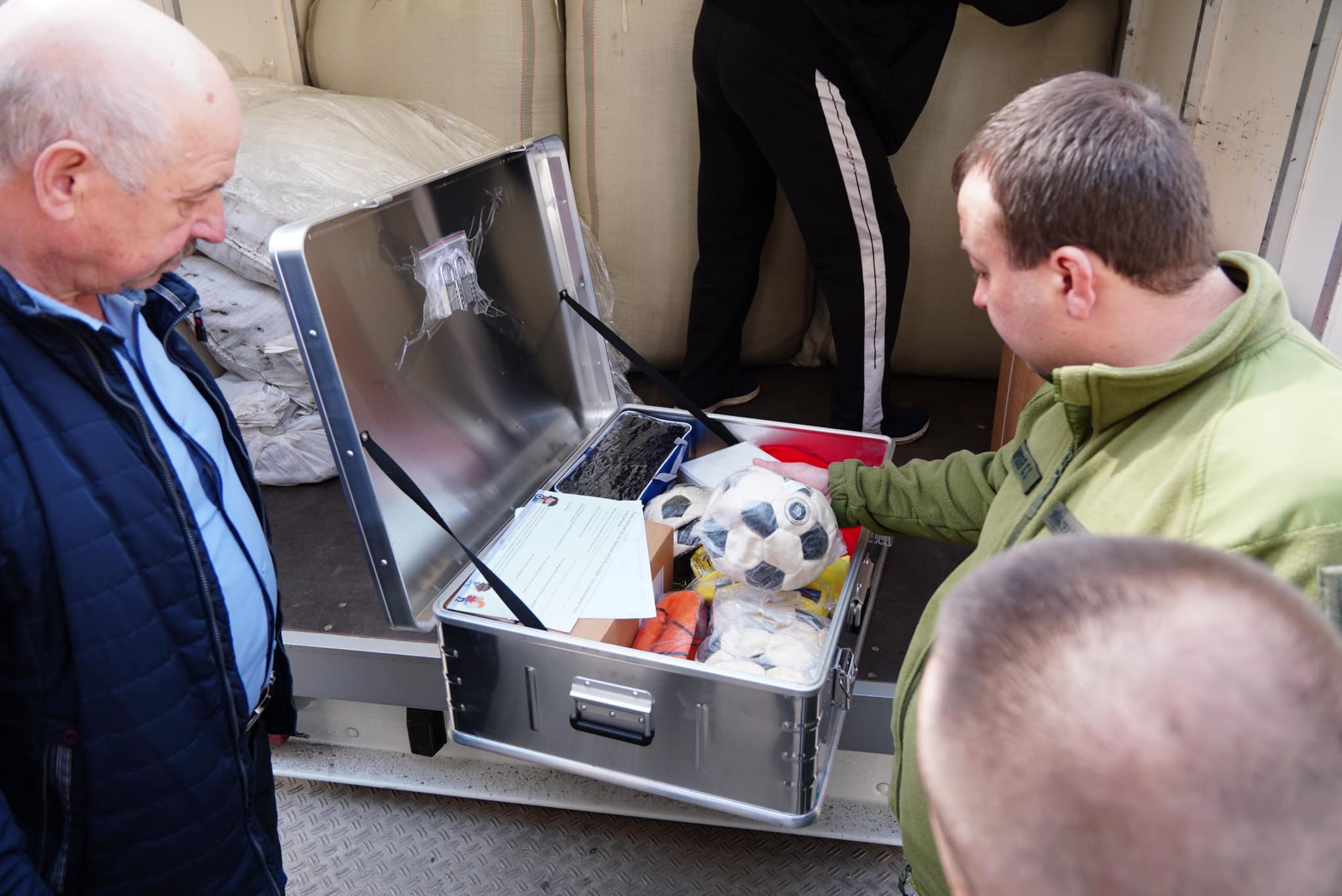 І з кожним вантажем із гуманітарного штабу відправляємо продуктові набори від Вінницької обласної військової адміністрації. А у місцеву школу - набори від ЮНІСЕФ.