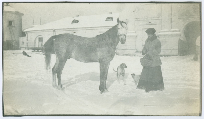 Гелена Ґрохольська на подвір'ї П'ятничанського маєтку, бл. 1910.