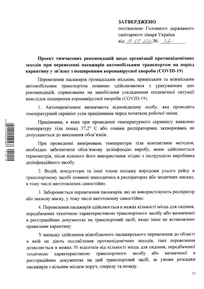 3. Забороняється перевезення пасажирів, які не використовують респіратор або захисну маску, в тому числі виготовлену самостійно.