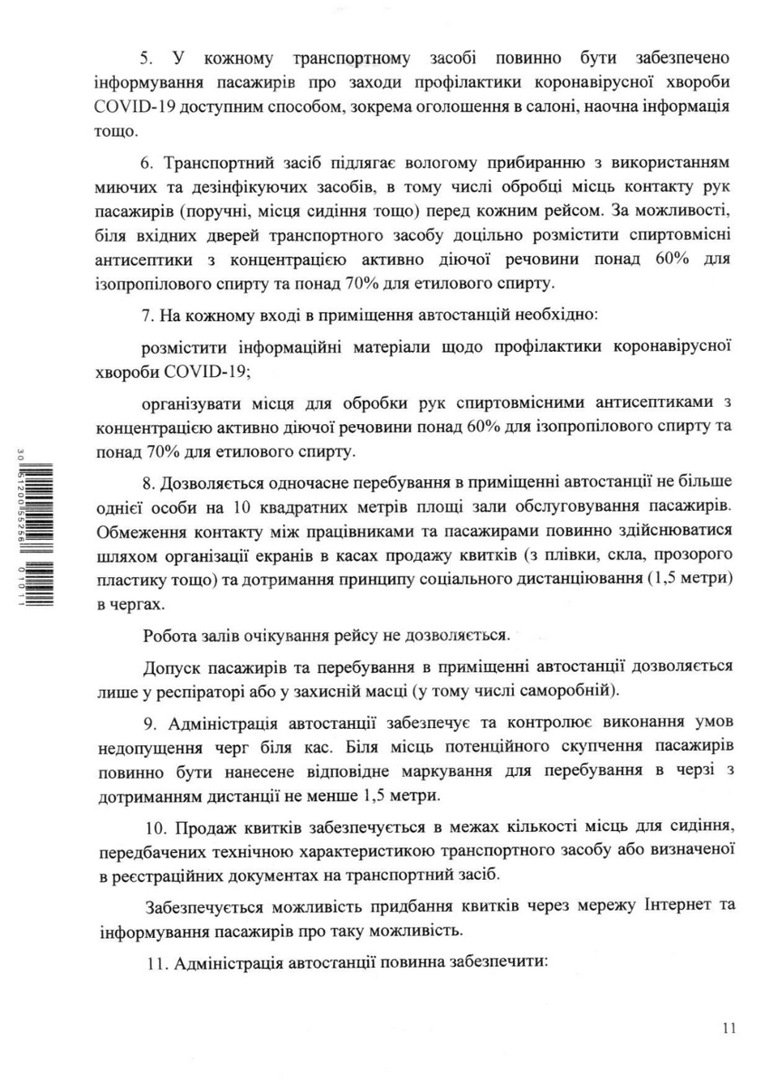 5. У кожному транспортному засобі повинно бути забезпечено інформування пасажирів про заходи профілактики коронавірусної хворобиCOVID-19 доступним способом, зокрема оголошення в салоні, наочна інформація тощо.