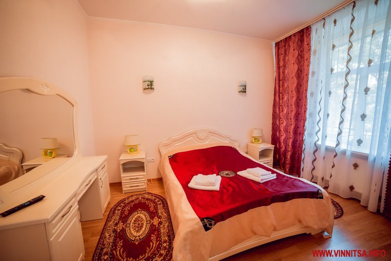 Номер «апартаменти VIP» складається з двох просторих кімнат: спальна і кімната-студія. Приміщення має обладнану повноцінну кухню і їдальню, а також шафу-купе, м'який куточок з журнальним столиком, плазмовий телевізор в кожній кімнаті, широке двоспальне ліжко з ортопедичним матрацом, приліжкові тумби, комод, фен, Wi-Fi. Простору ванну кімнату.