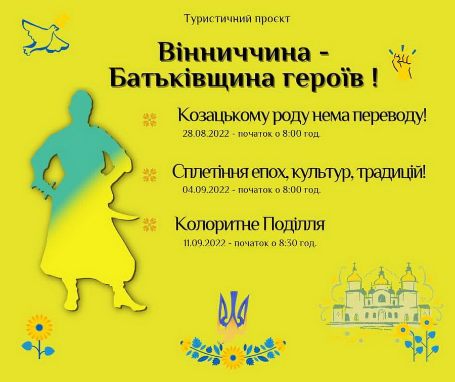 У Вінницькій області презентували туристичний проект «Вінниччини – Батьківщина героїв!». Відчути могутність козацької сили, послухати бувальщини про героїв, які боронили наші землі та перемагали на території Вінниччини – можна буде на екскурсіях, які підготували для жителів та гостей області до Дня Незалежності.