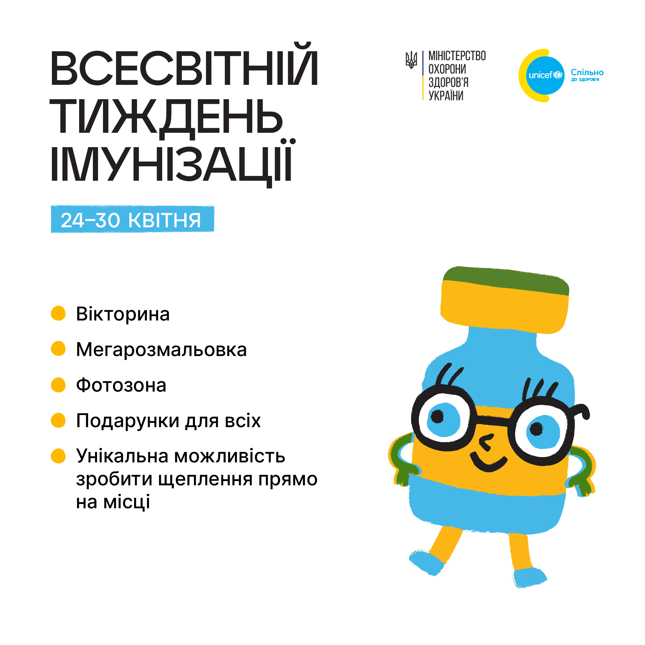 В понеділок стартував Всесвітній тиждень імунізації. З цієї нагоди у Вінниці, на дитячих точках «Спільно» ЮНІСЕФ з 27 по 30 квітня відбуватимуться інтерактивні заходи для школярів, дітей та дорослих.