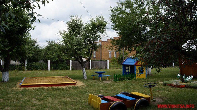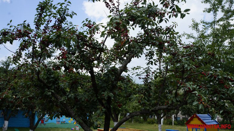 На території ДНЗ багато плодових дерев. Дозріли вишні, директор закладу каже, що ягоди та груші з яблуками, які достигають восени використовують для приготування страв та компотів для діток.