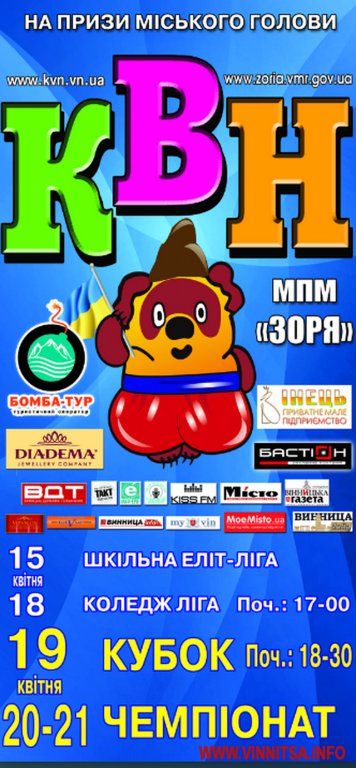 20 – 21 квітня Чемпіонат КВН 18:30.