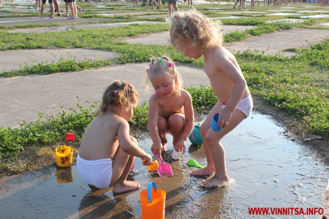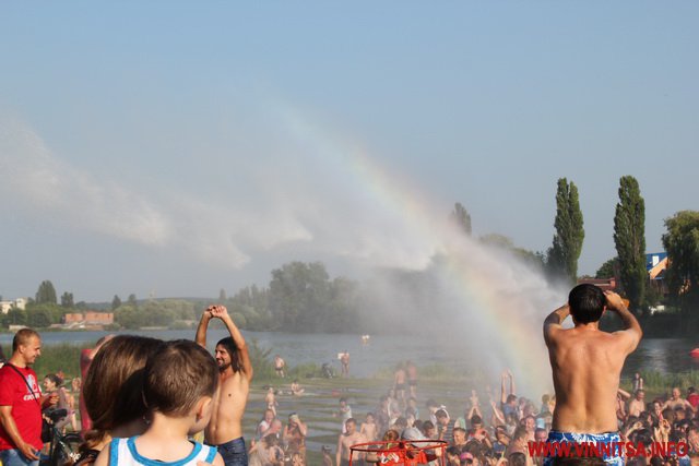 Яскравою подією стало захоплююче масове обливання з пожежного автомобіля. Радощам не було краю. Мокрі з ніг до голови вінничани дякували «вогнеборцям» за літній душ у спеку і хороший настрій.