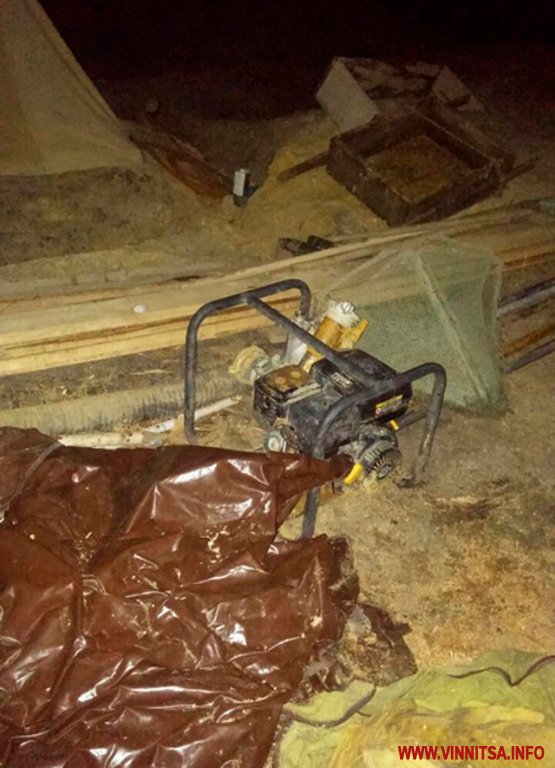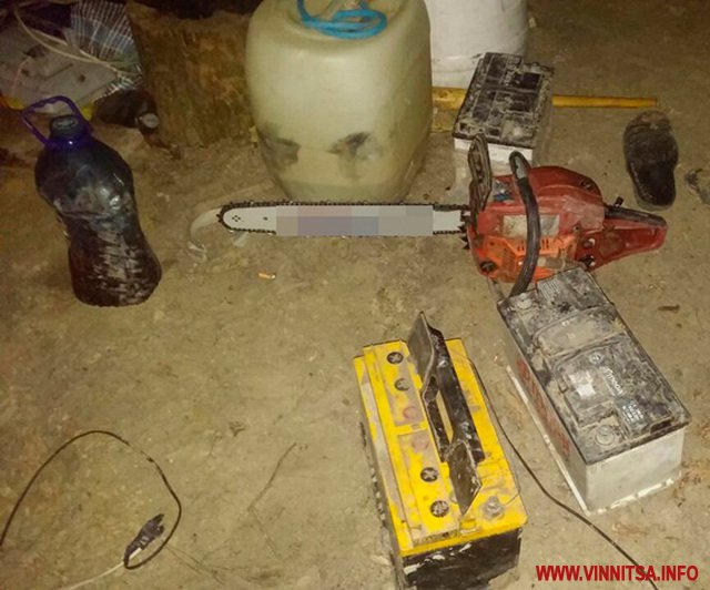 Виявлені на місці події знаряддя видобутку – дві мотопомпи, електрогенератор, 4 пожежні рукави по 20 м кожний, металевий наконечник, 6 металевих прутів, 3 акумулятори, бензопилу та майже 60 грамів бурштину вилучено правоохоронцями.
