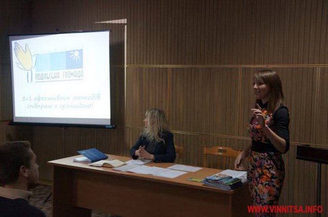 У першому інформаційному блоці заходу учасникам презентували нові підходи, сучасні форми роботи та шляхи взаємодії із органами влади інститутів громадянського суспільства на Вінниччині у сфері реалізації молодіжної та сімейної політики. Свій досвід учасникам представили Ткачук Валентина - голова вінницької обласної організації «Територія мам», Данілова Олена – керівник грантового відділу та молодіжних програм БФ «Подільська громада», Кілимник Ірина – директор КП «Вінницький молодіжний центр праці», Рибачок Андрій – голова вінницької обласної громадської організації тур-клуб «Бідняжка», Очеретний Євген – координатор міських дитячих омбутсменів м. Вінниці, Рудюк Юлія – заступник голови громадської організації «Станиця Вінниця ПЛАСТу» Національної скаутської організації України.