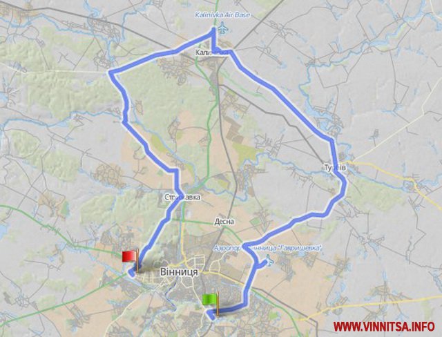 Мaршрут: м.Вінниця (кривa) – Вінницьки Хутори – Стaдниця – Приборівкa – Турбів – Новa Прилукa – Кaлинівкa – Гущинці – Мізяків – Стрижaвкa – Вінниця (ТРЦ «ШОК»).