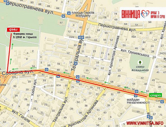 Маршрут у Вінниці складає 1 км: вул. Соборна – до парку ім. Горького – Літній театр. Також в рамках заходу на всіх чекає насичена розважальна програма: розминка всією площею, майстер – клас Street Workout Kyiv, виступи музичних та танцювальних коллективів, спортивні активності та дитяча зона.