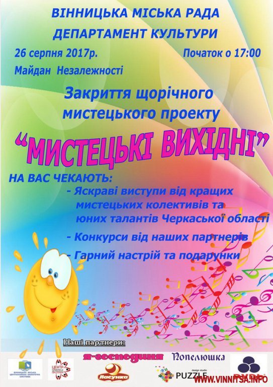 26 серпня у Вінниці відбудеться зaкриття щорічного мистецького проекту «Мистецькі вихідні».