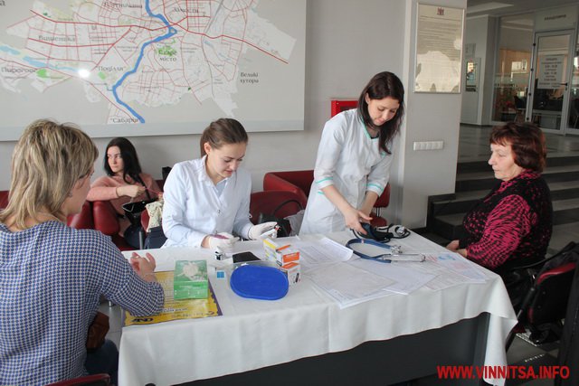8 квітня вінничани мали змогу безкоштовно виміряти артеріальний тиск та дізнатися про рівень глюкози у крові. Акція проводилася до Всесвітнього Дня здоров’я у Прозорих офісах міста, а також у Центрах первинної медико-санітарної допомоги.