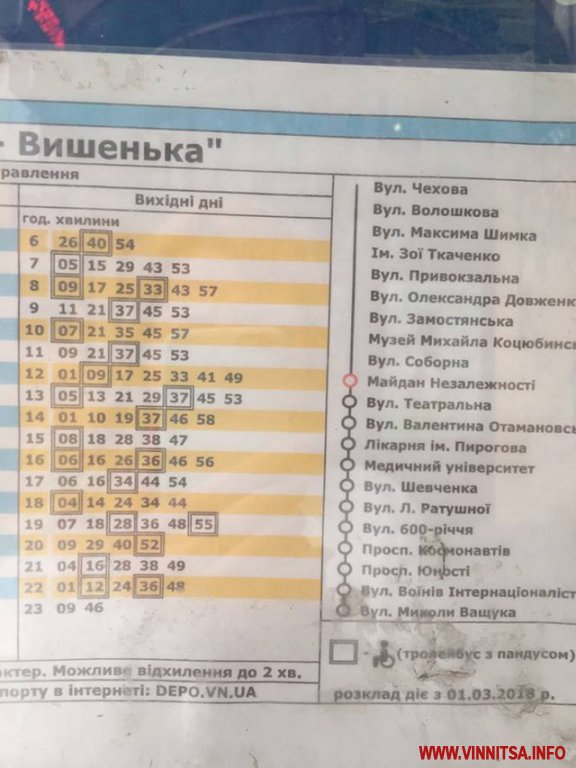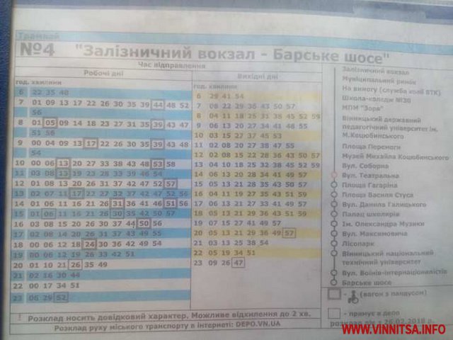 З початку березня у Вінниці на зупинках громадського транспорту оновили інформацію, де вказано з графік руху трамваїв і тролейбусів, які пристосовані для людей на візках та мам з колясками. Інформація з розкладом руху низькополого транспорту з’явилась і на сайті Вінницького трамвая.