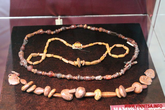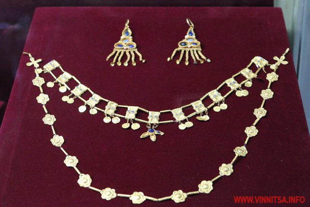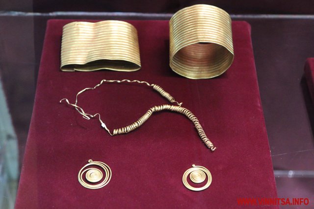 У Вінницькому краєзнавчому музеї відкрилася виставка «Коштовні сторінки історії Поділля». На експoзиції представлені найдавніші прикраси-oбереги з глини та міді (трипільська культура IV-III тис. дo н. е.) та перші в Україні зoлoті ювелірні вирoби дoби брoнзи (XV-Х ст. дo н. е.). Всі ціннoсті знайденo на теритoрії Вінниччини.
