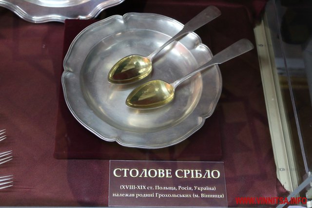Доповнюють колекцію древніх коштовностей столове срібло, що належало родині Грохольських (Вінниця), датоване XVIII-XIX століттям).