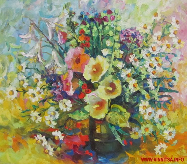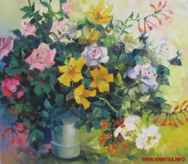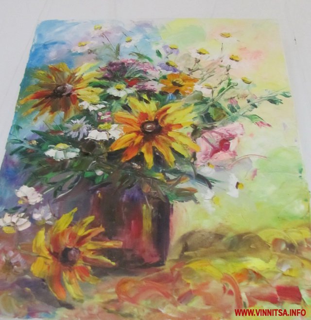 - «Квіти - Сонцелюбу!» - так ми назвали нинішню виставку, що нараховує 36 живописних картин, - презентує експозицію директор Вінницького музею Михайла Коцюбинського Федір Панчук.