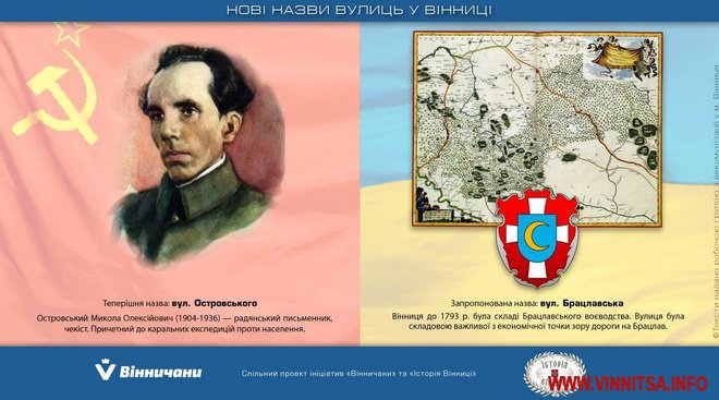 У місті може з’явитися Брацлавська вулиця, замість Островського. Оскільки до 1793 року Вінниці входила до складу Брацлавського воєводства.