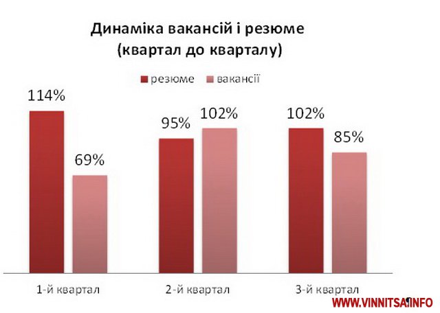 У зв’язку із затяжною кризою в країні на ринку праці спостерігається негативна динаміка приросту кількості вакансій. Тим не менше, в третьому кварталі 2014 року в таких проф. сферах, як «керівники вищої ланки», «некомерційні організації», «юристи», «робочий персонал» і «будівництво, нерухомість» кількість пропозицій навіть збільшилася у порівнянні з попереднім кварталом. Зростання склало в середньому 14-16%. Протягом року більш-менш стабільною ситуація з кількістю пропозицій залишається в Києві, Львові, Харкові й Дніпропетровську.