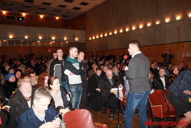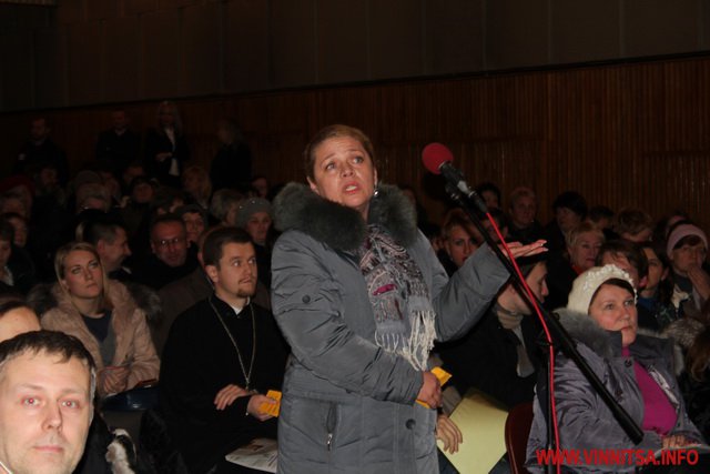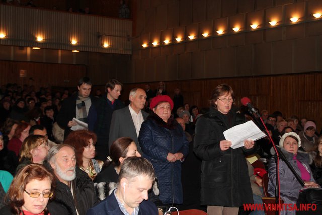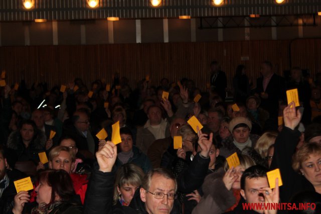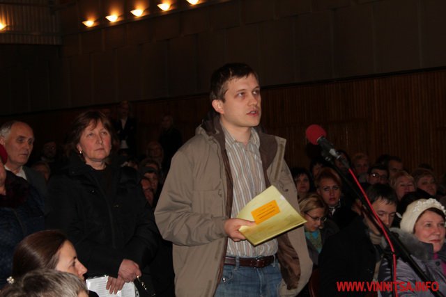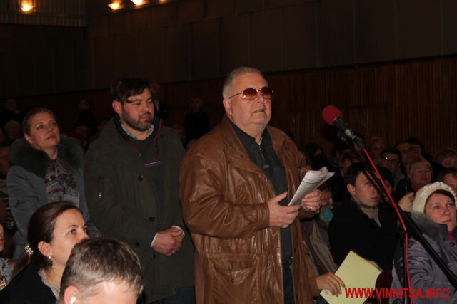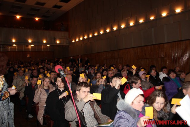 Після чого і почалися «гарячі» обговорення. Вінничани вишикувалися у чергу до мікрофона. Кожна пропозиція, яка була внесена під час виступів виставлялась на голосування.