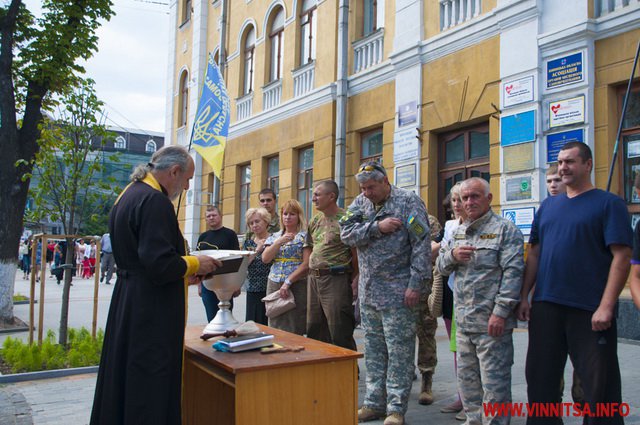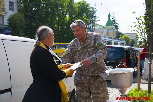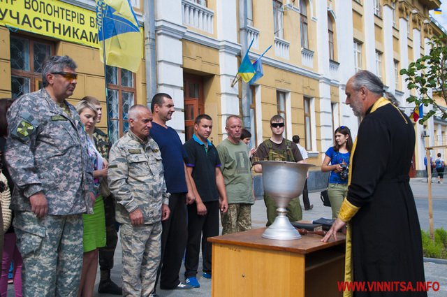 Всього цього разу в зону АТО було відправлено чотири машини з гуманітарною допомогою. Волонтерів, які відправилися на схід, благословив представник відділу Вінницької єпархії по співпраці зі збройними силами України протоієрей Олександр Загороднюк. Священик відслужив молебень та окропив вантаж і добровольців святою водою. Звертаючись до присутніх, отець Олександр наголосив, що в храмах УПЦ щодня моляться за мир в Україні, а також за українських воїнів, щоби Господь допомагав їм у службі і повертав живими і здоровими до мирного життя в мирній Україні.