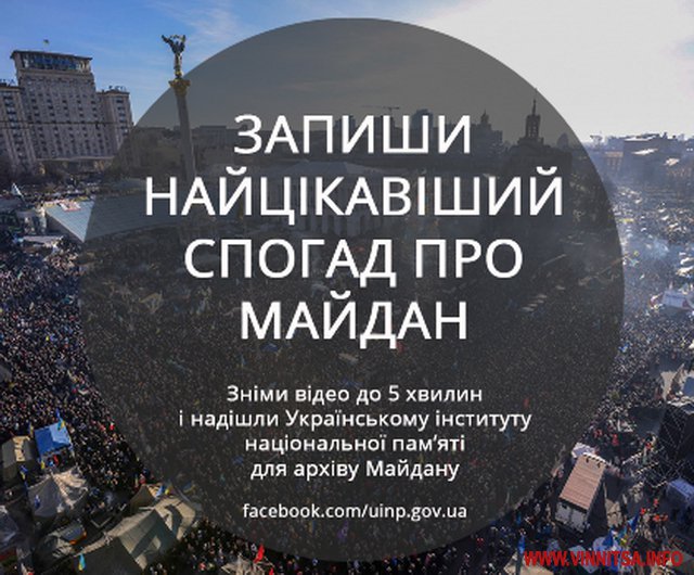 До першої річниці початку Євромайдану Український інститут національної пам’яті запрошує усіх охочих взяти участь в акції “Запиши найцікавіший спогад про Майдан”.