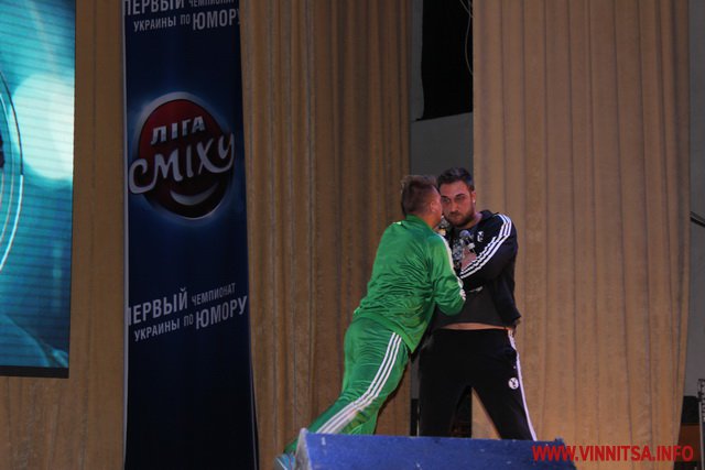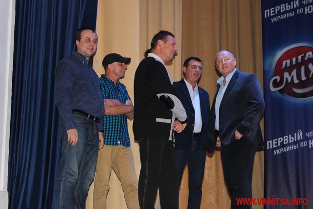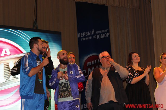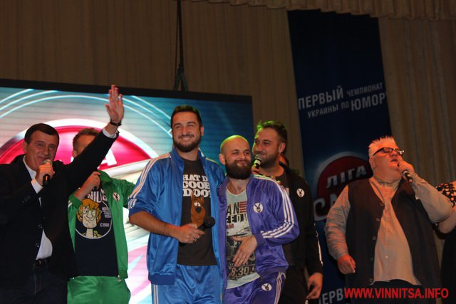 Ведучими «Ліги сміху» були відомі в шоу-бізнесі колишні КВН-щики Сергій Сивохо та Наум Баруля. Вінничанин Наум навіть розповів присутнім, як колись у Будинку офіцерів «зажигав» з командою КВН-у.