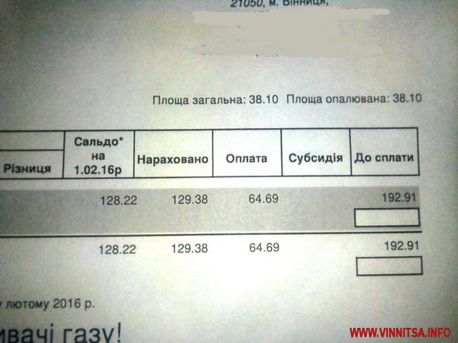 Днями вінничани почали отримувати рахунки за спожитий газ у лютому. Цифри у нових платіжках вкотре шокували городян, які не встигли встановили лічильник: вони вдвічі більші від попередніх, до того ж у бланках з’явилася додаткова графа із ще однією сумою.
